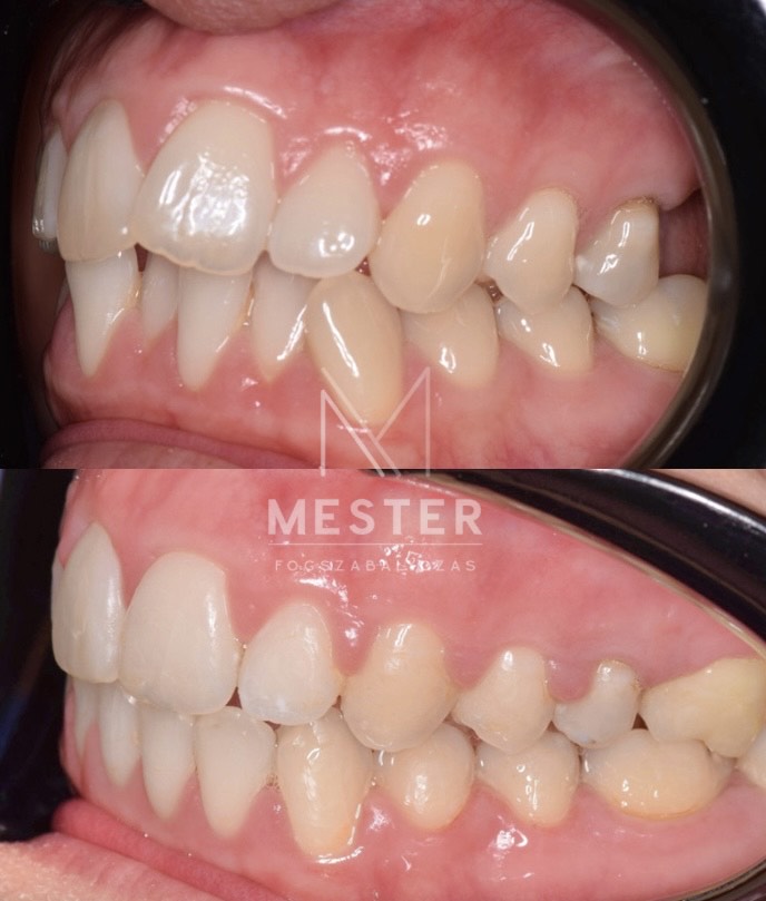 2. eset: Páciensünk ektópiás (soron kívüli) szemfogakkal és nem megfelelő harapással (Class II harapás) érkezett hozzánk.